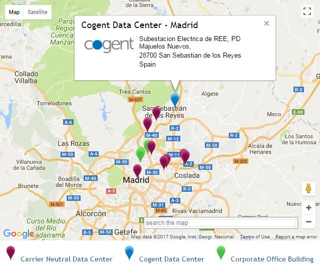 Cogent has many other On-Net buildings in the greater Madrid area, including office buildings and other data centers.